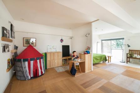 子供が大きくなったら、部屋の中に大きな箱を置いてみたいと話すOさん。実際に参考にしたい部屋の事例を見せながら「部屋のこの辺りに箱を置くと、この空間が区切られて、、」と、次の展開イメージや構成も決まっている様子のOさんでした。
