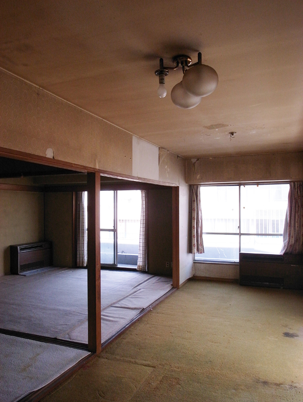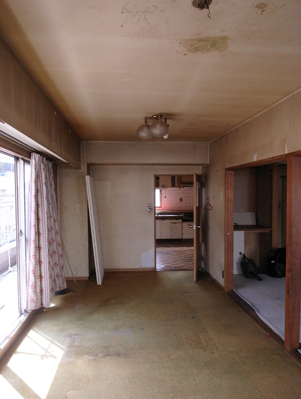 千代田区の一等地に建つこのマンションも、売り出しの時、以前のオーナーさんが全く手を入れていなくて、本当にボロボロの状態でした。窓がひび割れ、サッシもゆがんで閉まらず、壁も油やカビで汚れ放題。間取りも昔ながらの感覚で細かく区切られていて、せっかく100㎡の面積があるのにリビング的に広く使えるスペースが全くないのです。この状態ですから、だれも買い手がつかず…、後からリノベーションすることを考えると、ものすごくお買い得の価格で手に入るわけです。