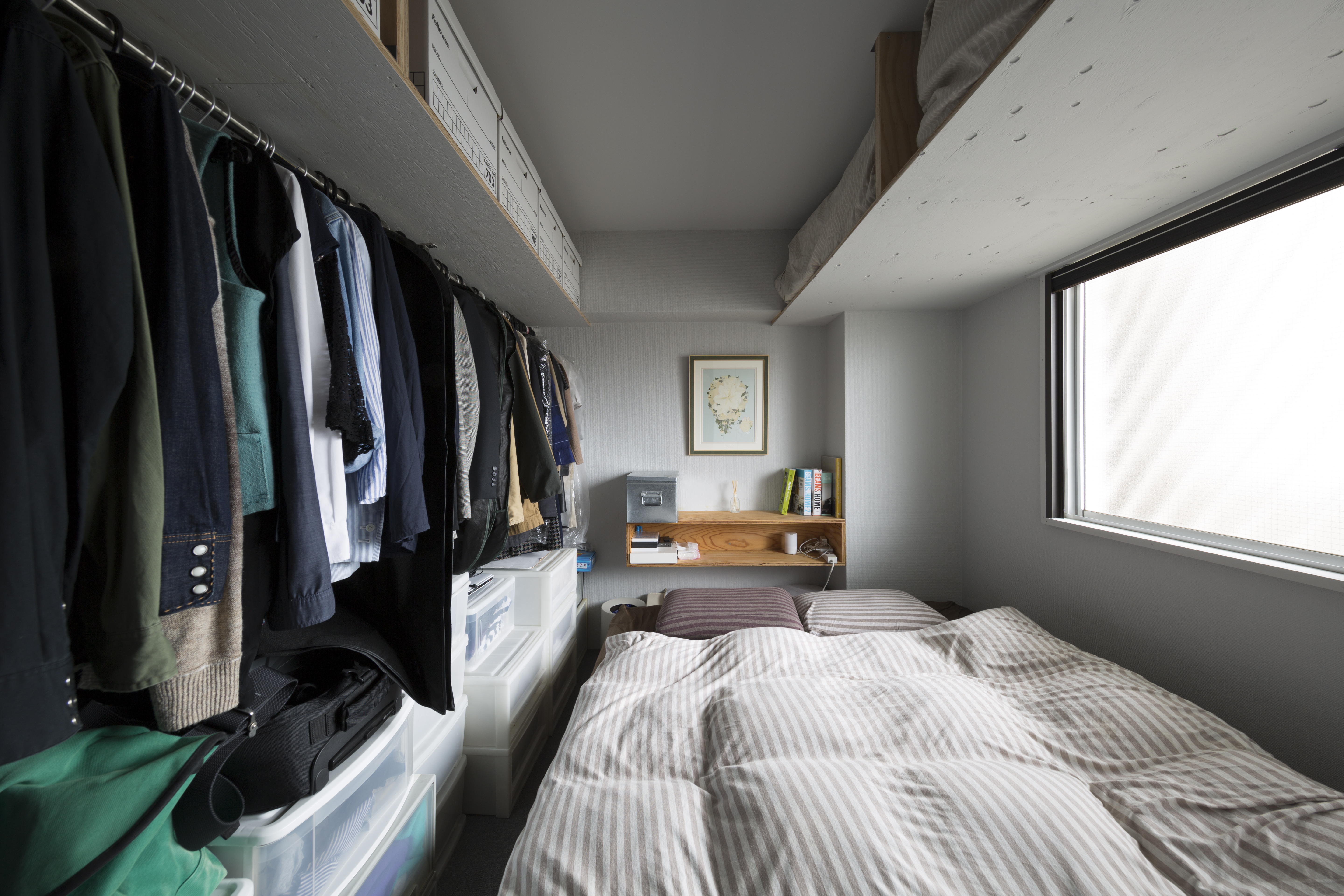 リビングを広さを確保するために、極限までコンパクトにした寝室。