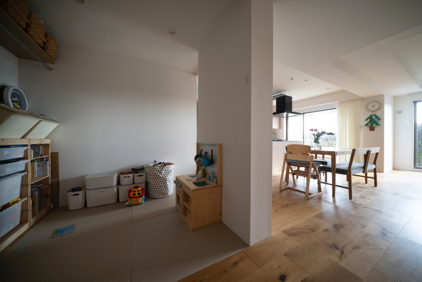お子さんのスペースは、畳敷きでほかのスペースと区切りをつけた。