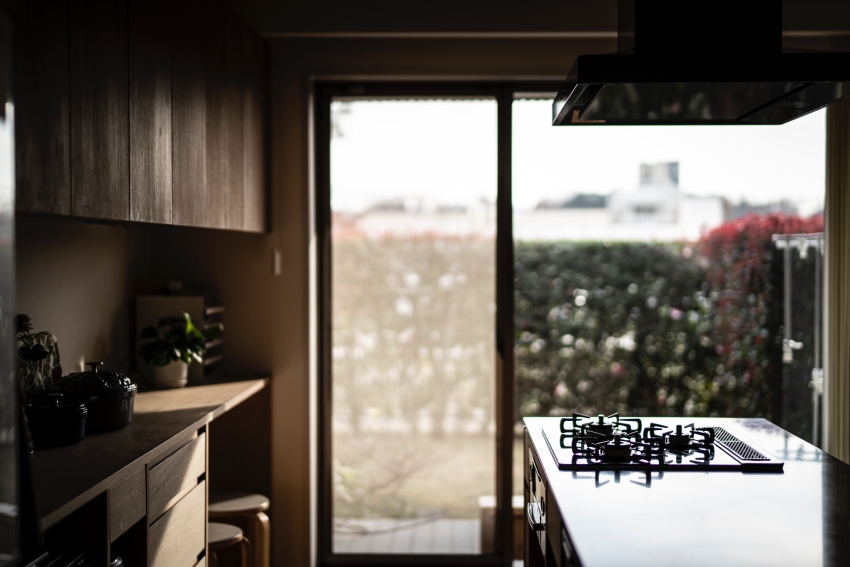 「実際にこのキッチンを使ってみて、とても気持ちいいです。リビングも庭も見れるし。窓をあけると風通しもいいです」(奥さま)