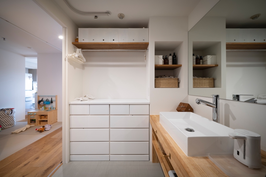 「そうですね。小さいベッドも入るしということで。あと、おもちゃ収納は以前の住まいからのものを使っています。これを入れたいっていう希望がありました」(奥さま)