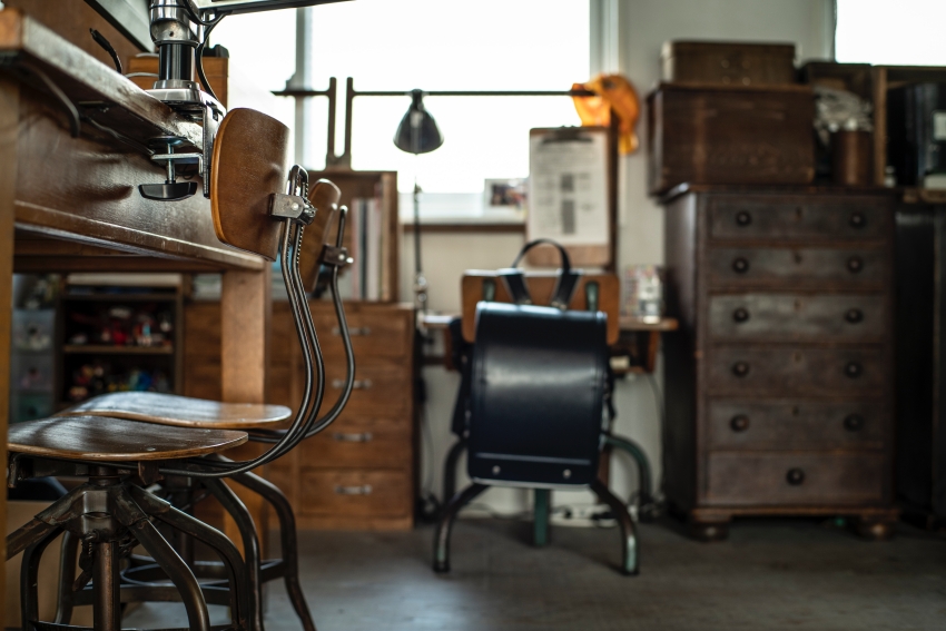 現在のHさんのお部屋には、仕事用のデスクや椅子、ソファや収納家具に至るまで、お二人が大切に集めてきたアンティーク家具が倉庫のような空間の中に配置され、本当にどこかの骨董屋さんのような、趣のある雰囲気になっています。