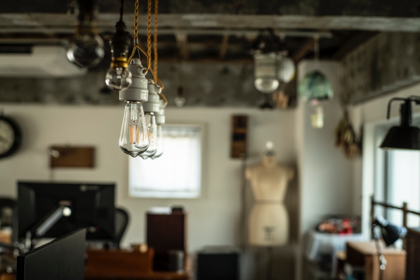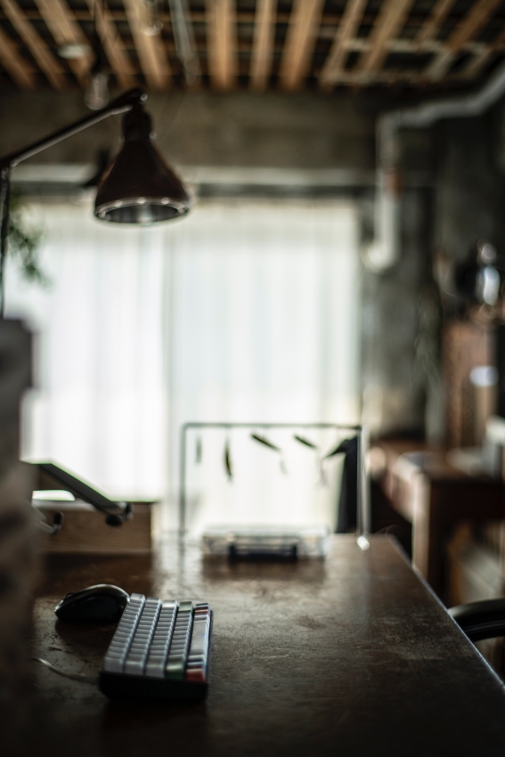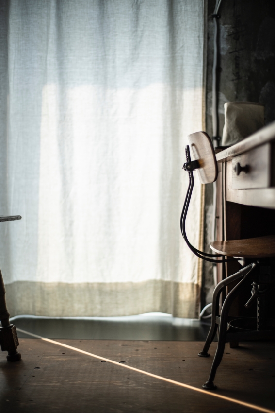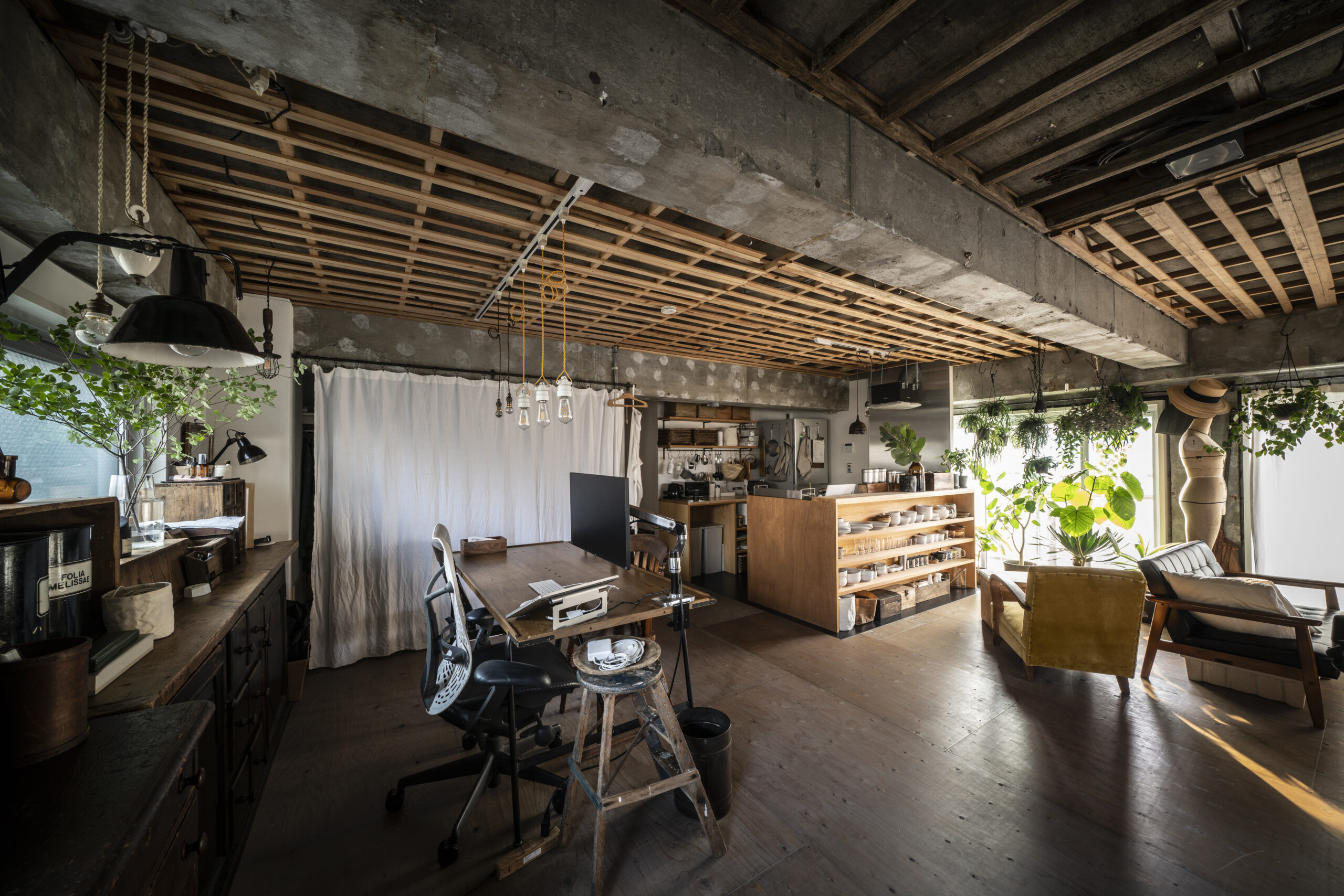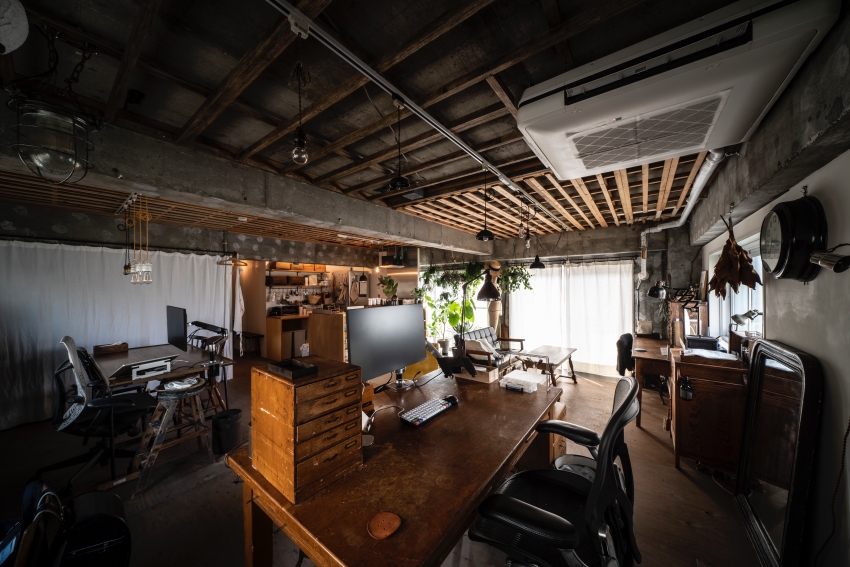 現在のHさんのお部屋には、仕事用のデスクや椅子、ソファや収納家具に至るまで、お二人が大切に集めてきたアンティーク家具が倉庫のような空間の中に配置され、本当にどこかの骨董屋さんのような、趣のある雰囲気になっています。