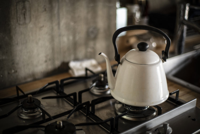 質感が美しいステンレストッププレートのシンプルなガスコンロを採用。開放的なキッチンなら、家具としても空間に馴染むように設計したい。