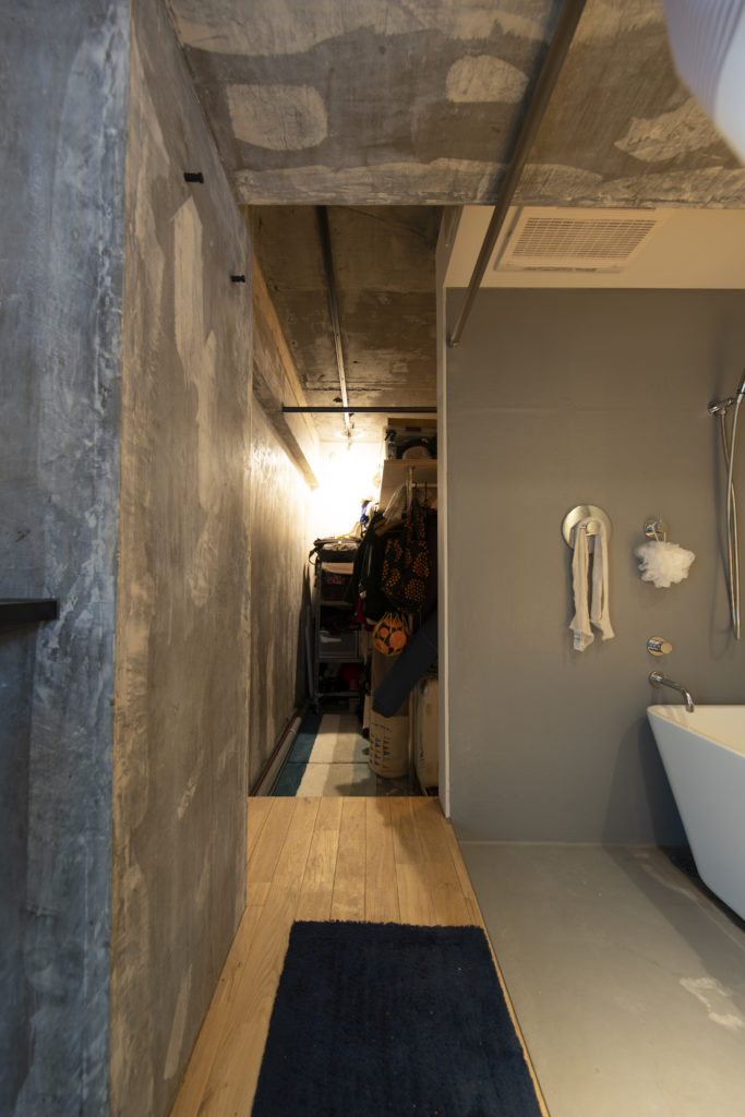 例えば、ここではお風呂の扉をなくしました。もちろん、扉がなくても成立するように空間の寸法を設計で調整してもいるのですが、実際に生活してみても扉がないことの問題は全然なく、よかったと言います。要素を削ることは必要なものを研ぎ澄ますことであり、悪いことではありません。