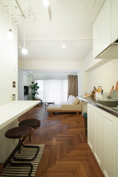 築 40年の中古マンションとはいっても、購入後すぐに改修計画を立てて、現在は、自分好みの内装にリニューアルしたところに住んでいます。ですので、むしろ新築以上にデザインと素材へのこだわり度が高い、注文住宅のように体に馴染む家に住んでいるわけです。いわゆる、中古マンションをリノベーションするという考え方です。