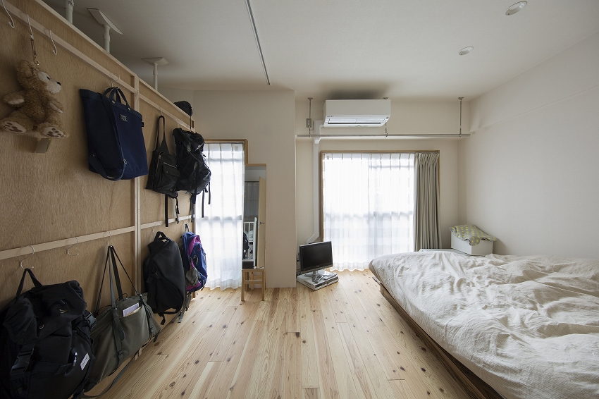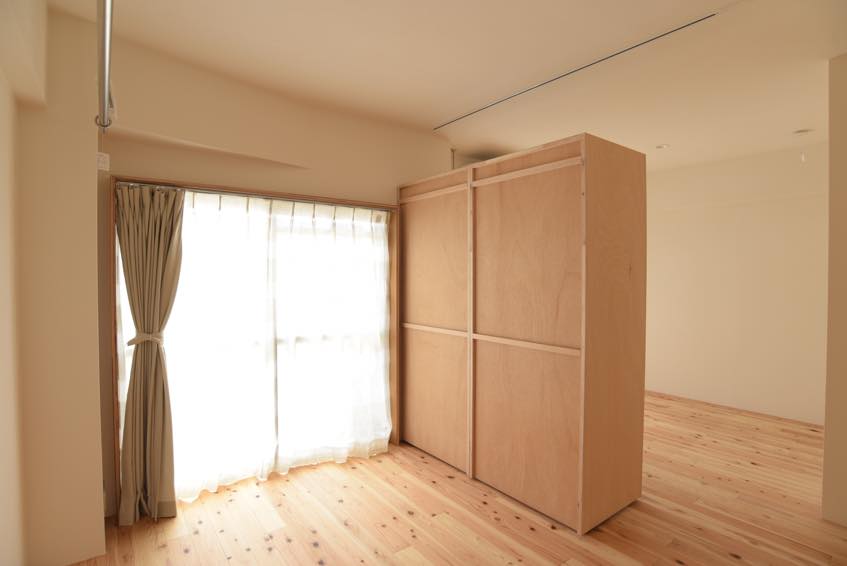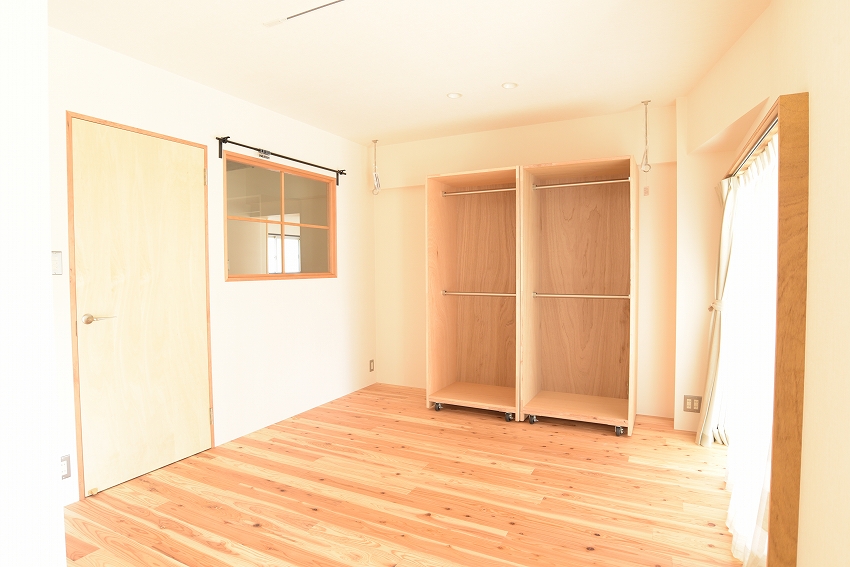 現在は可動クローゼットを寄せ気味に設置し、広い寝室+ウォークインクローゼット風にして使っています。