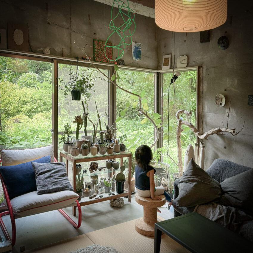 そんな景観に馴染むような低層マンションを購入したKさんご夫妻。大きな窓から森のような緑と自然光が入ってくる1階のお部屋に、陶芸家の絵里加さんとデザイナーの旦那さんのセンス溢れるインテリアが調和しています。