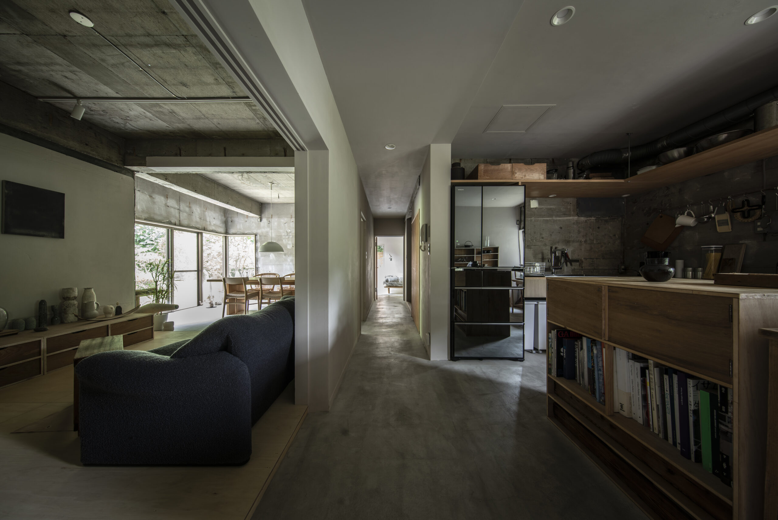 限られた条件のなかで、選び抜いたモルタル仕上げや駆体表しの内装は、K邸を象徴する空間の表情となりました。