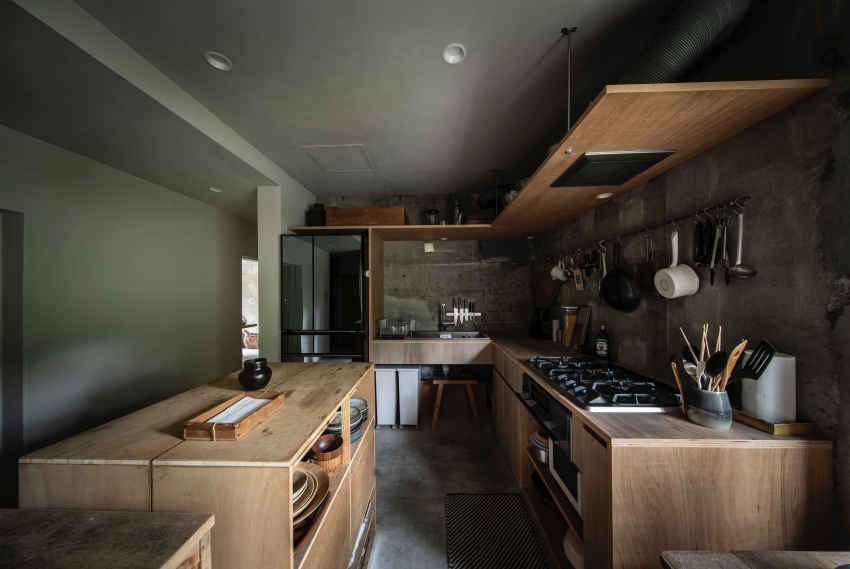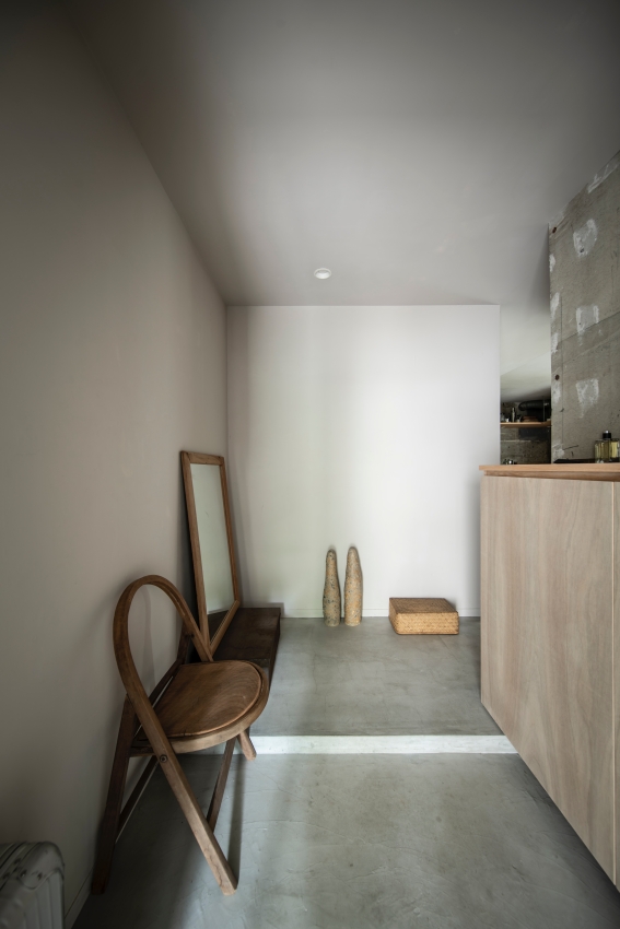 限られた条件のなかで、選び抜いたモルタル仕上げや駆体表しの内装は、K邸を象徴する空間の表情となりました。