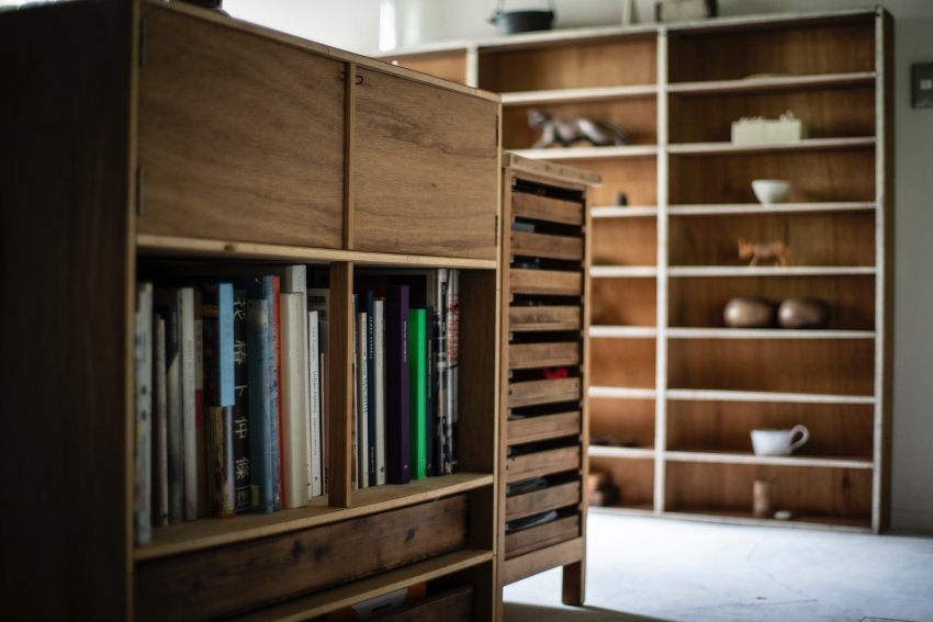 完成した造作家具は、切り出しの取手や素材の美しさが印象的な仕上がりに。空間に合わせた素材やデザイン、置く場所や収納するものに合わせて計算し尽くされた機能性、全てが今の時点で完璧だったといいます。
