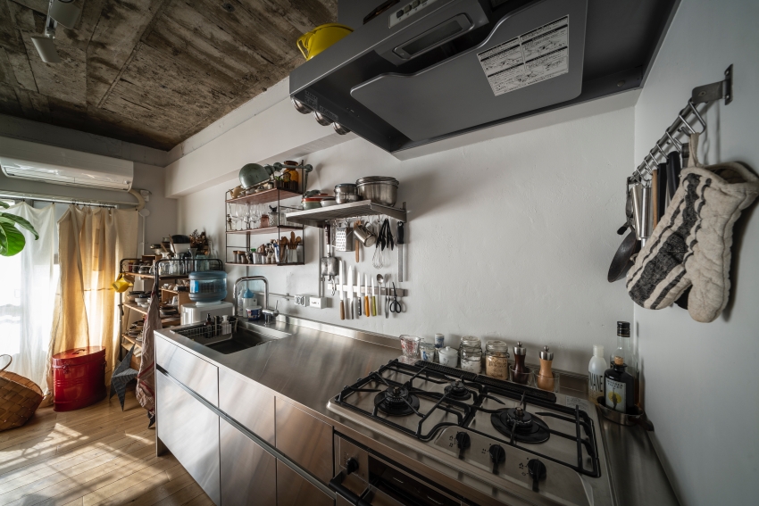 妻のマリコさんは、フードスタイリスト。本業で業務用の設備や道具を使っていることもあって、ご自宅のキッチンも、その基準を踏まえた作りになっています。