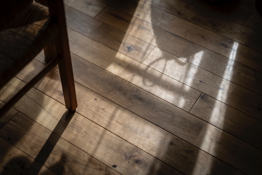 床に使用したのはオークの無垢材。床材は部屋の印象を決めるものなので、慎重に選んで決めました。