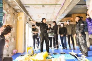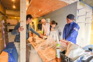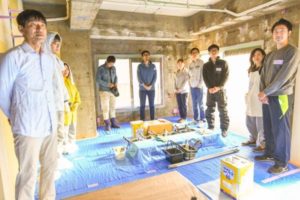 設計を担当した山口が、塗装方法をレクチャーしています。