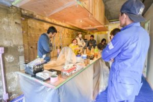 なんだか、タオルの巻き方が職人さんのように見えます。ツナギ持参の方も!(昔、引越し屋さんでバイトしていたとか。)