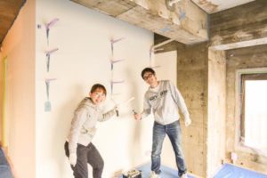 お施主さん家族のお子さんも、一緒にぬりぬり~気がつくと、あ~!!床まで一生懸命コロコロしていました(笑)