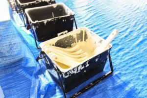躯体を塗るときは、コンクリートの小さな穴も埋めるように、少し力をいれるのがポイント。