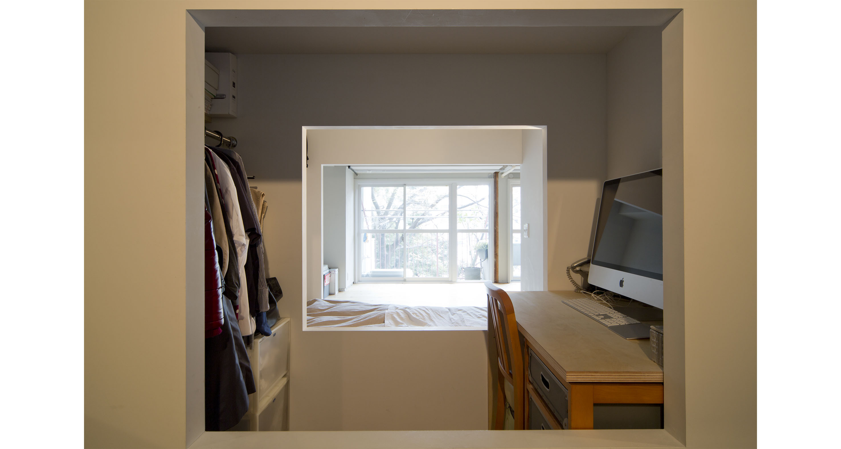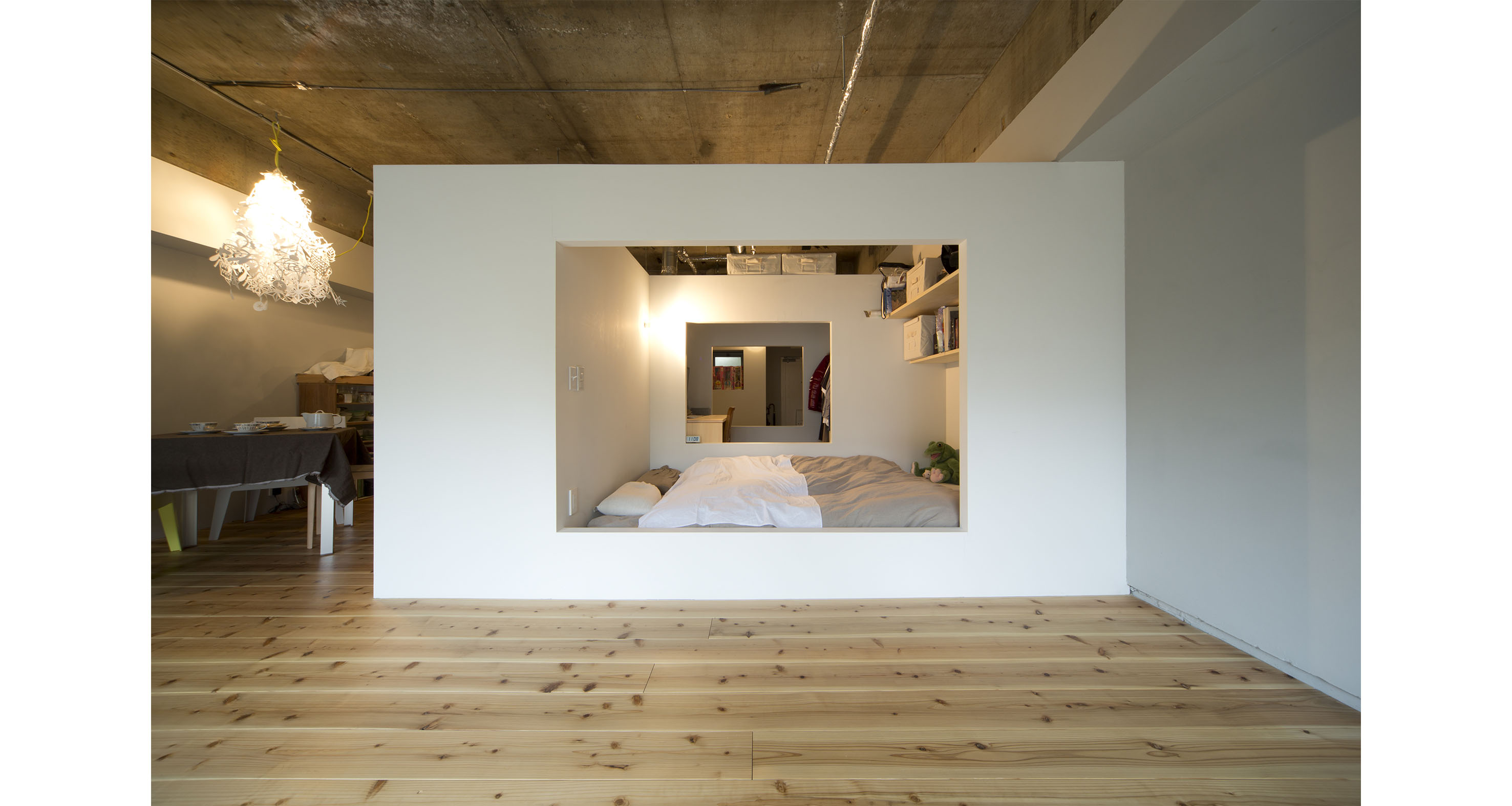 家の中で最大の特徴は、真ん中の「箱」。暮らしはじめて開口のサイズに変化をつけたことがお気に入りポイントのひとつになったと施主さんは語ってくれました。その事実を設計したスタッフは6年目にして初めて知り、喜びました。
