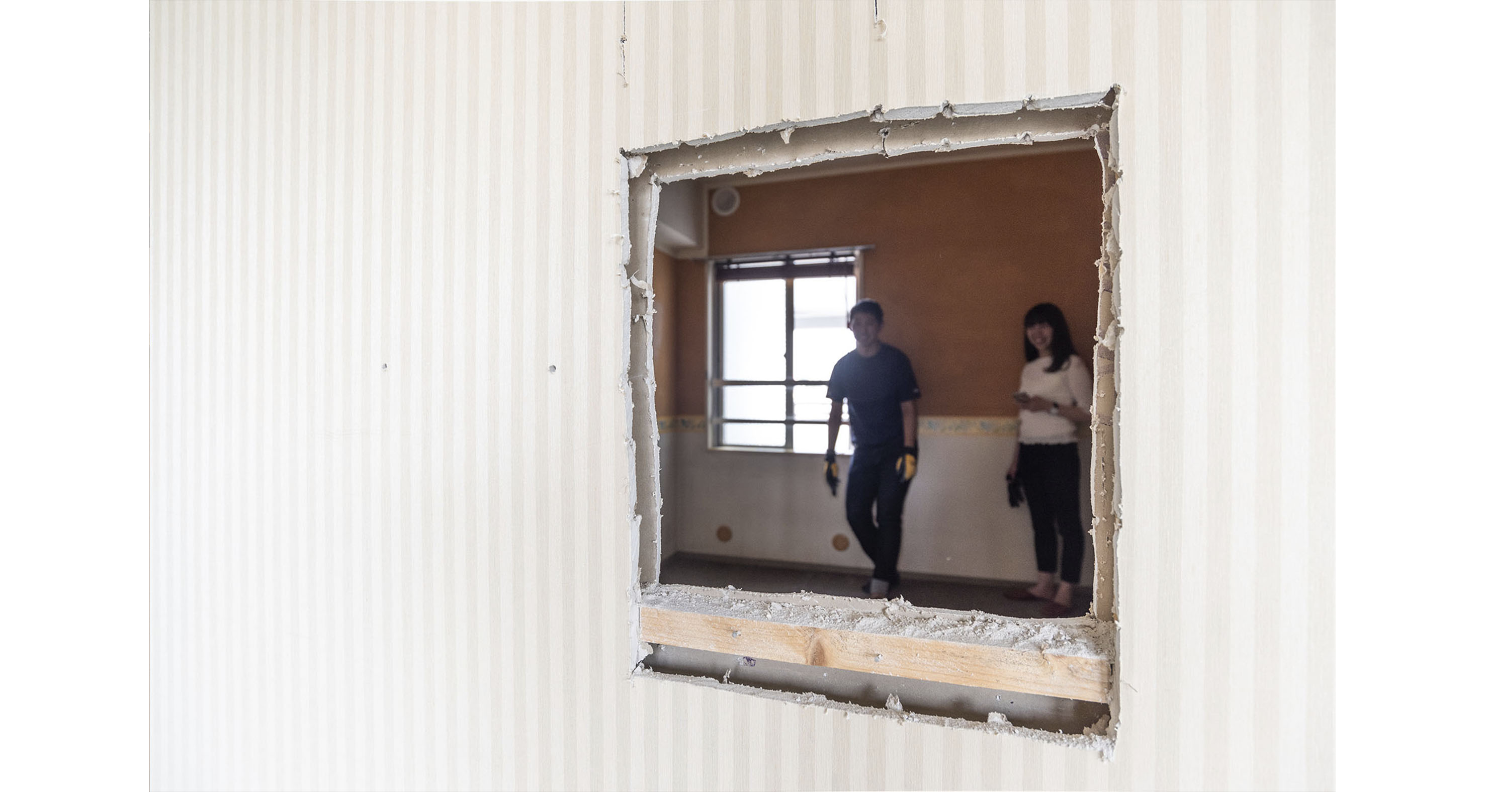 また、今回は前回同様に部屋の壁に穴を開けてみて、壁は壊せることを見ていただく中で、副産物として格段に風通しが良くなったことを実感されたようでした。リノベーション後の部屋のレイアウトに関して、クライアントはよりフレキシブルな構造になることを希望されていて、完成イメージにある土間のある場所がクライアントご夫婦ともにお気に入りポイントだとお話されていてリノベーション後の争奪戦がすでに予想されています。