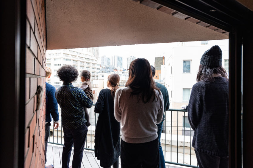 段差を意図的に設けることで、空間にアクセントが付き、それがいる場所で風景を変える今回の住まい。変えることが出来ないベーシックなものは活かしつつ、間仕切りがほとんどない1ルームになっているため、回遊性も高くかつ抜け感のある部屋に、初めてこの部屋を訪れた参加者は皆好奇心を前面に出しながら見学をしていた。