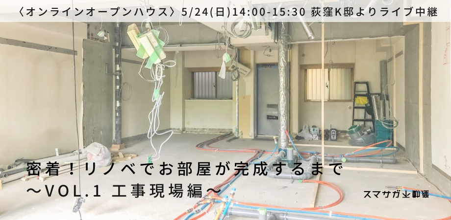 Vol.1の今回は、リノベ空間がどのようにして作られているのか、K邸の工事現場からライブ配信し、お部屋の「裏側」をお見せいたします!