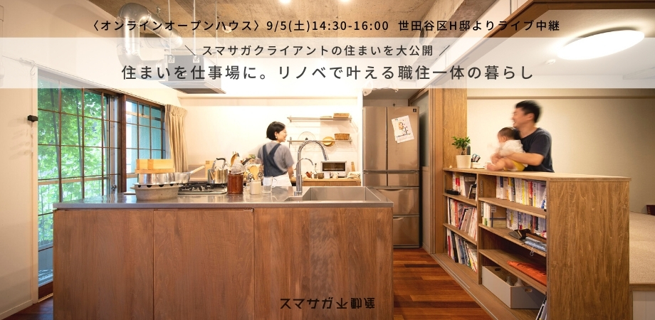 中古マンションを購入・リノベーションしたクライアント邸からライブ配信する、スマサガの恒例イベント「オンラインオープンハウス」