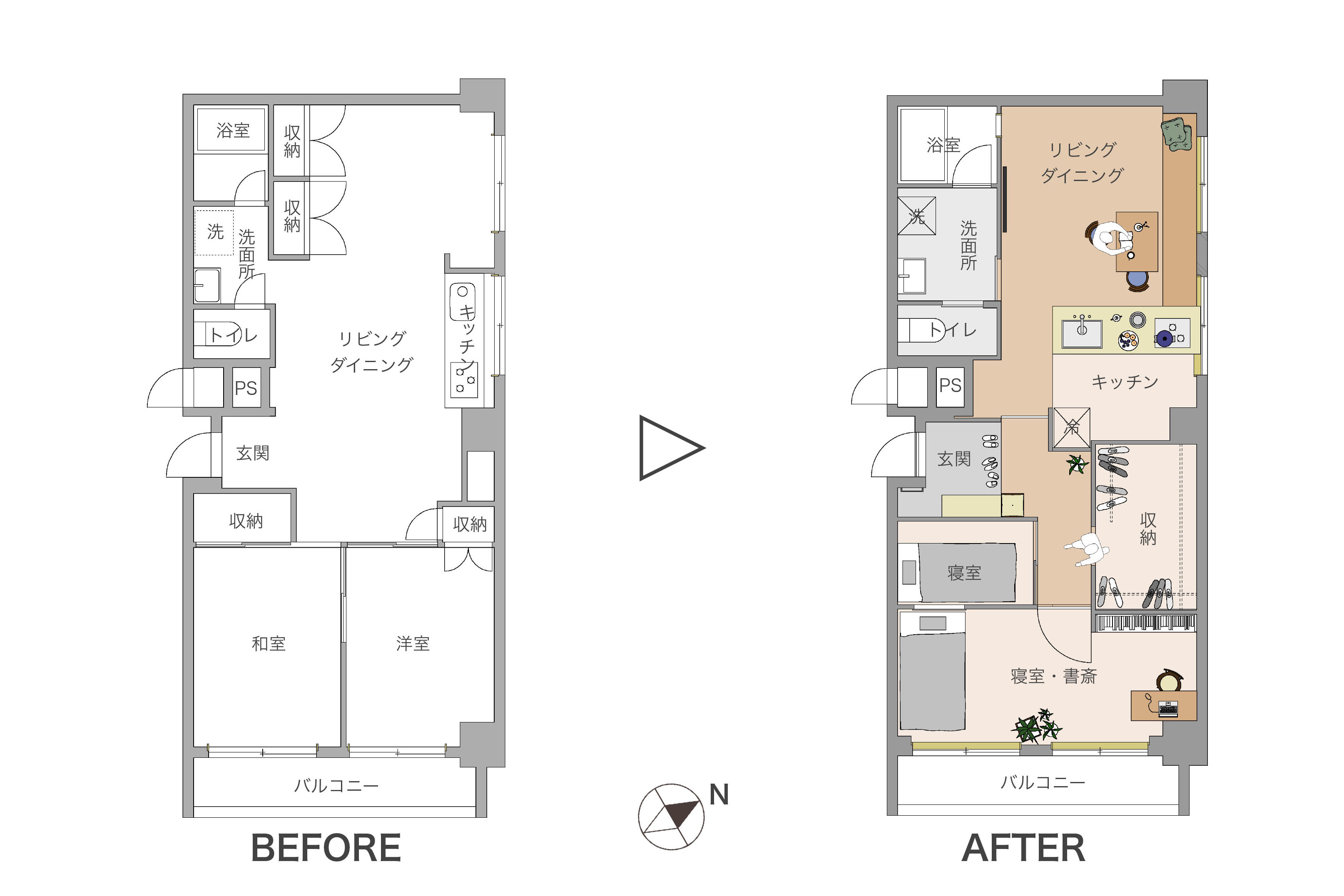 リノベーションを経て、実際に暮らしているお部屋を見ていただけますので、「リノベ後の暮らし」を体感していただけます。