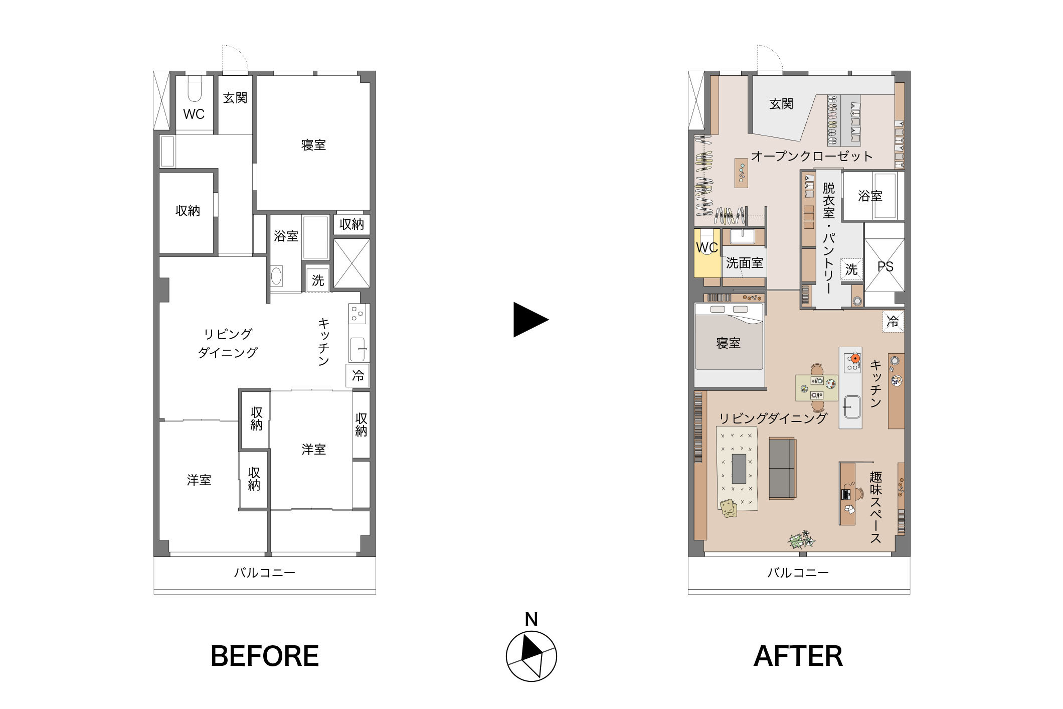 約100㎡の大空間に夫婦とワンちゃんが暮らすK邸。好きなコレクションに囲まれて暮らせる住まいを、フルリノベーションで叶えました。
