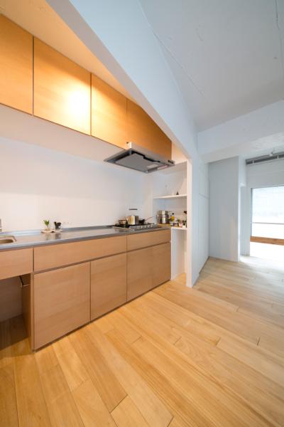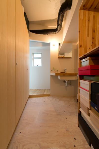 ン計画。間口巾が3.5mしかない細長く使い勝手の悪い空間に、要望される機能を全て盛