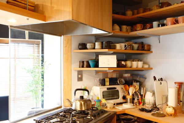 何度も雑誌やTV取材で取り上げられているW邸。今回は「暮らし上手のキッチン特集」として掲載されました。W邸のキッチンは、器のコレクションを飾れるようにと、オープン棚を多数造作し、お気に入りの器に囲まれながら家事ができる心地よい空間になっています。