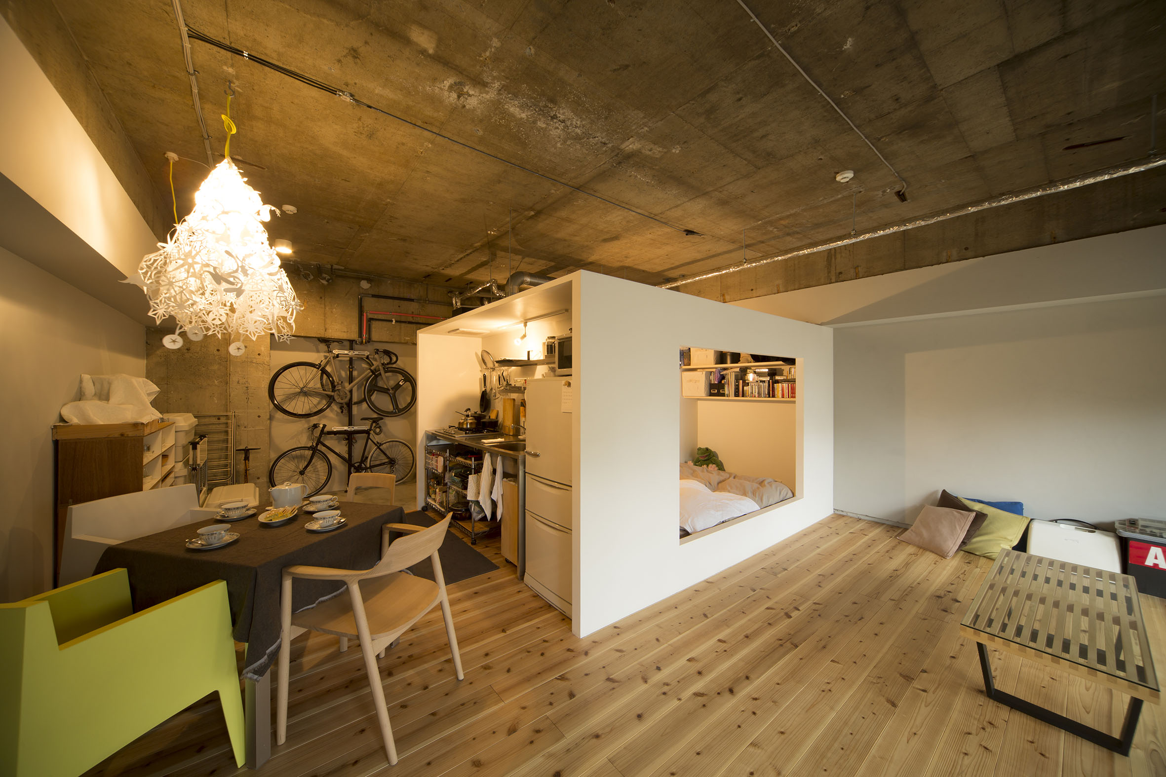 夫婦ふたり、目黒にある約50㎡のリノベ済みの中古物件を購入・リノベーションしたお部屋で開催。