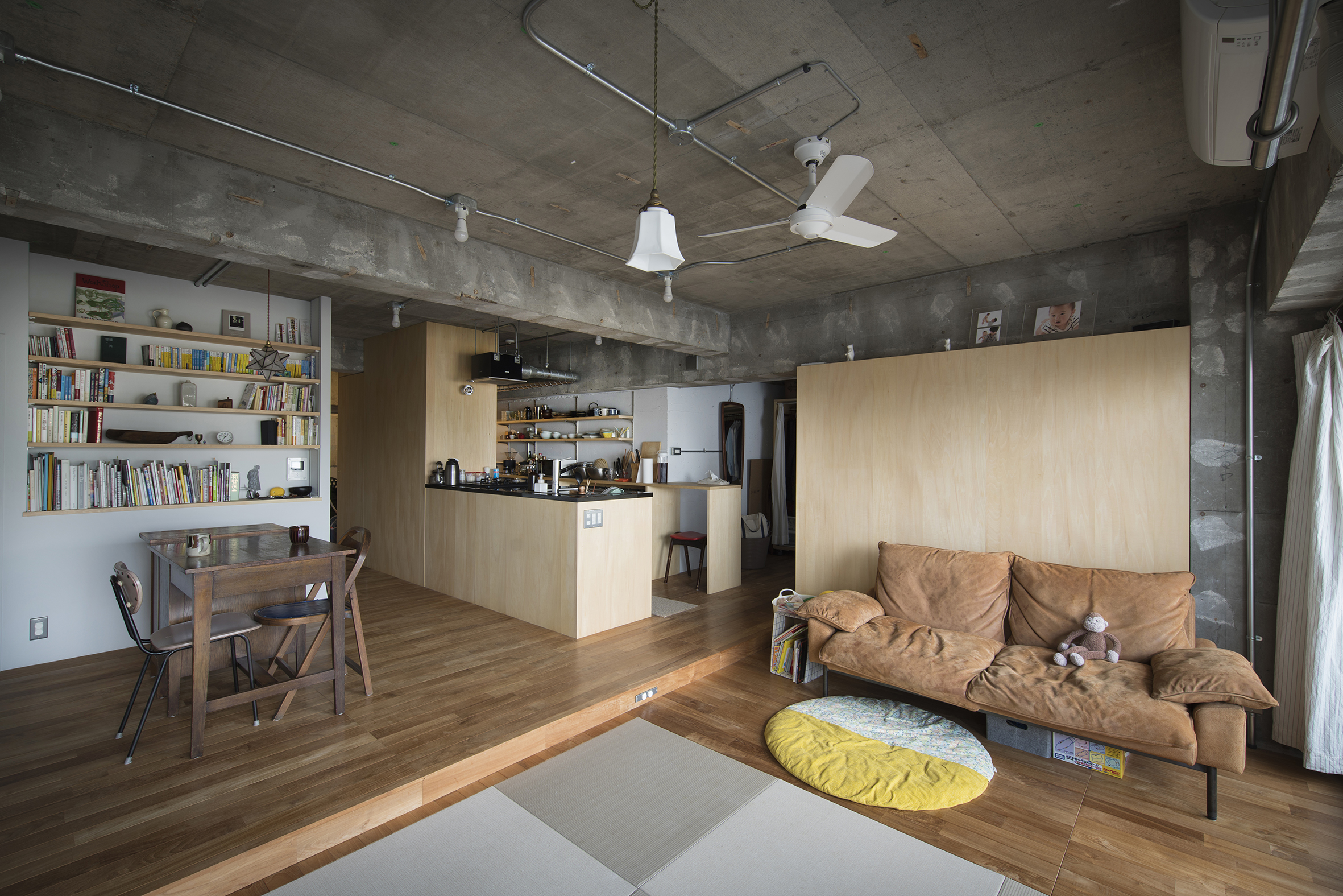 部屋中が見渡せる開放感と素材感を大切にしたI邸。しかし、家族が増えた時には、柔軟に間取りを変えられる間取りの工夫も見ることができます。