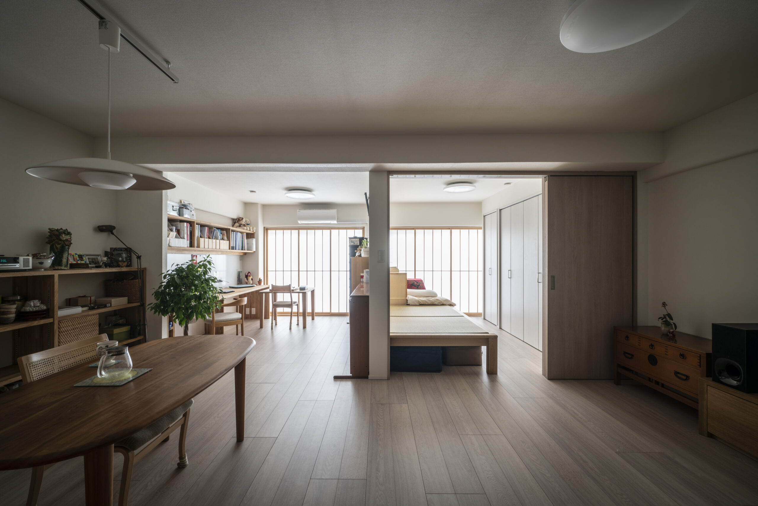 もともと3部屋に区分けされていた壁を適度に取り払い、開放感のあるエリアと籠もれるエリアに部分リノベーションしました。
