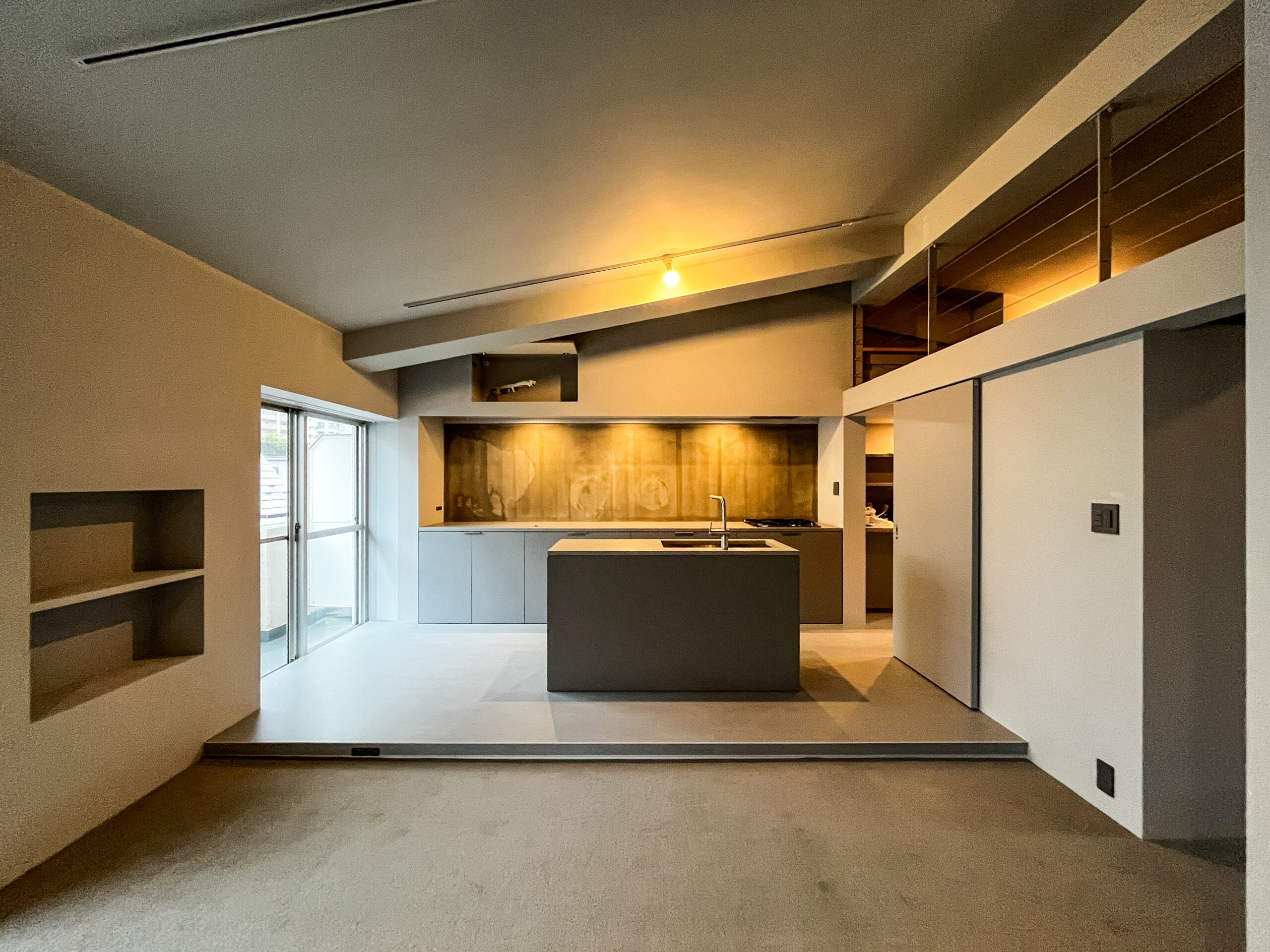 天井高が最大3Mあり、まるで戸建のような雰囲気があるお部屋をリノベーションした新宿区T邸。お部屋の印象をスッキリさせるために、寸法、素材、色合いなど徹底的に設計しました。