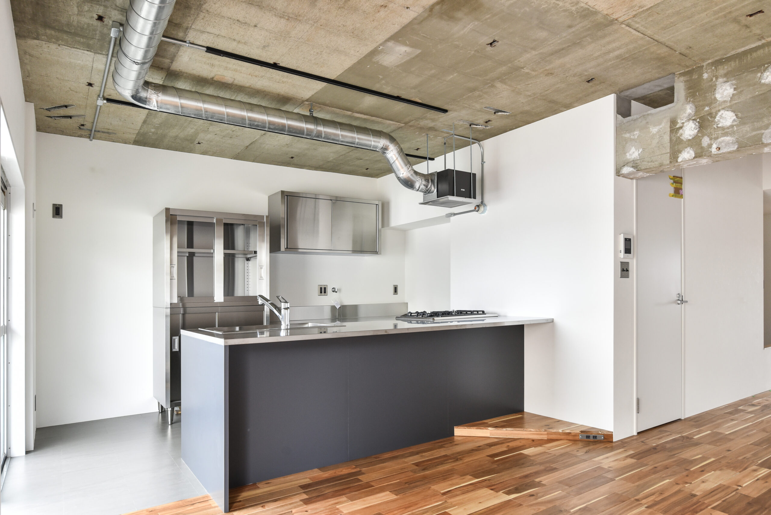 ご友人を家に呼んで料理をふるまうことがお好きなIさん。厨房のようなキッチンと大人数で囲めるホールのようなダイニングをテーマに、フルリノベーションしました。